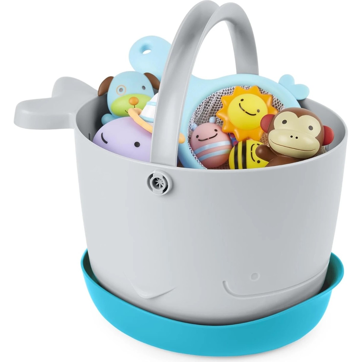 Găleata Skip Hop Moby Stowaway combină funcționalitatea, durabilitatea și designul atractiv, făcând baia și depozitarea jucăriilor mai ușoare pentru părinți și mai distractive pentru copii.