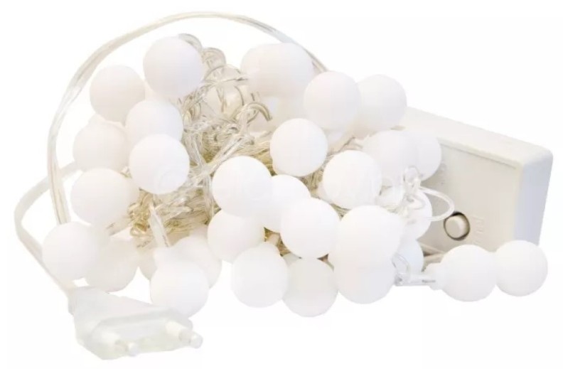 Estetică: LED-urile sunt sub formă de mici bile mate albe de 1x1 cm, care difuzează uniform o lumină caldă și plăcută. Culoarea albă a carcasei bilelor face ghirlanda discretă atunci când este oprită.