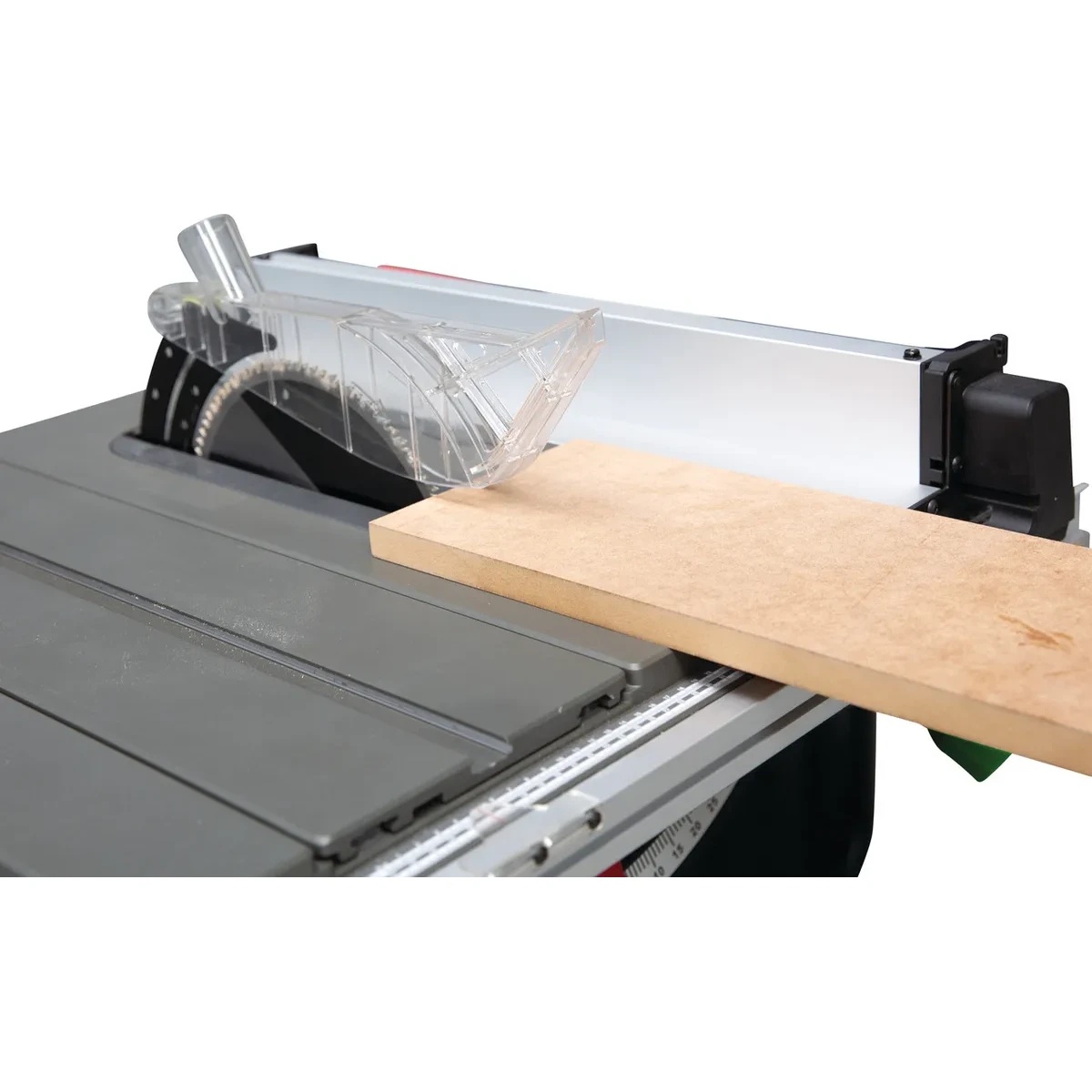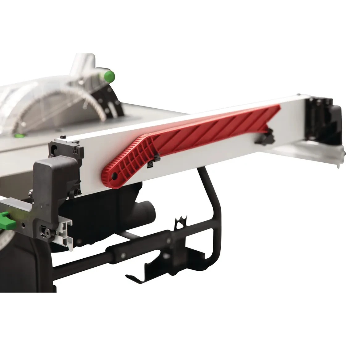 • Reglare precisă a opritorului paralel cu ajutorul cremalierei pentru o lățime de tăiere de până la 620 mm