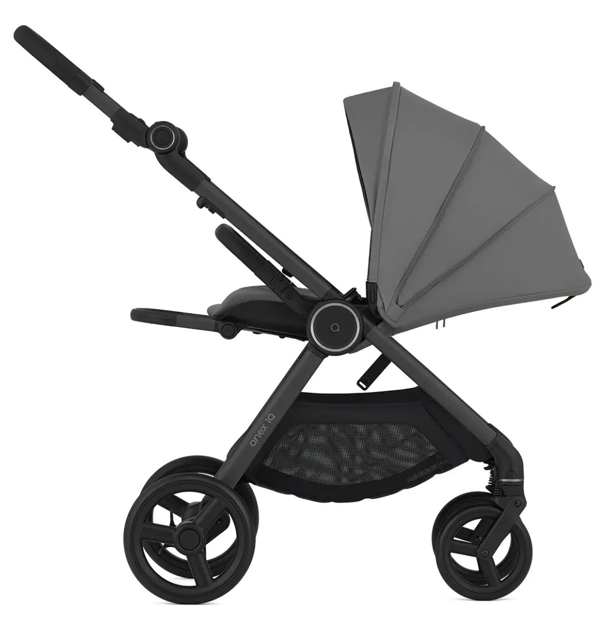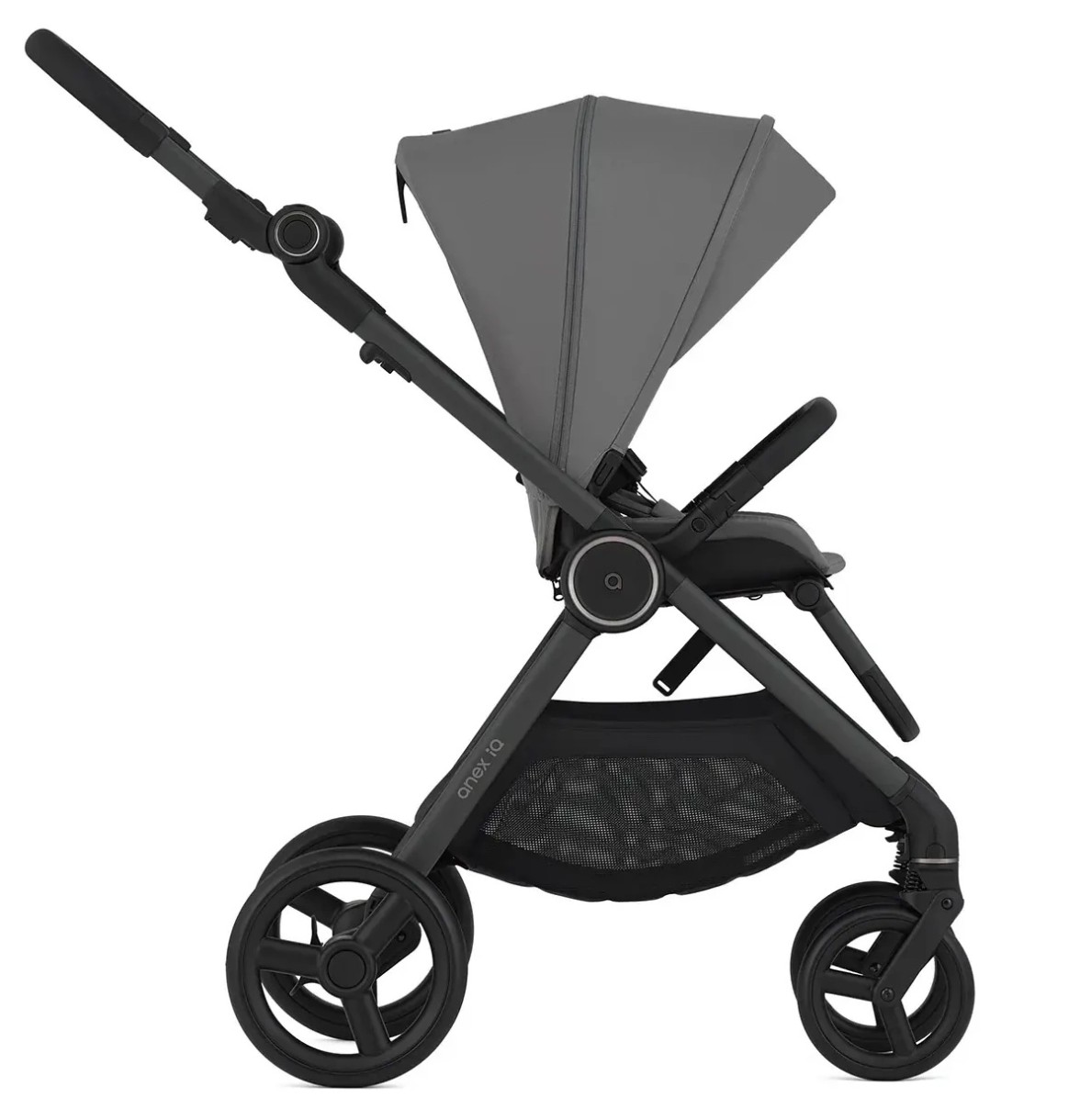 Căruciorul dispune, de asemenea, de un portbagaj spațios și buzunare convenabile pentru depozitarea obiectelor esențiale. Datorită materialelor de înaltă calitate și a unui design elegant, Anex iQ Basic este nu doar o soluție funcțională, ci și o soluție plăcută din punct de vedere estetic pentru părinți.