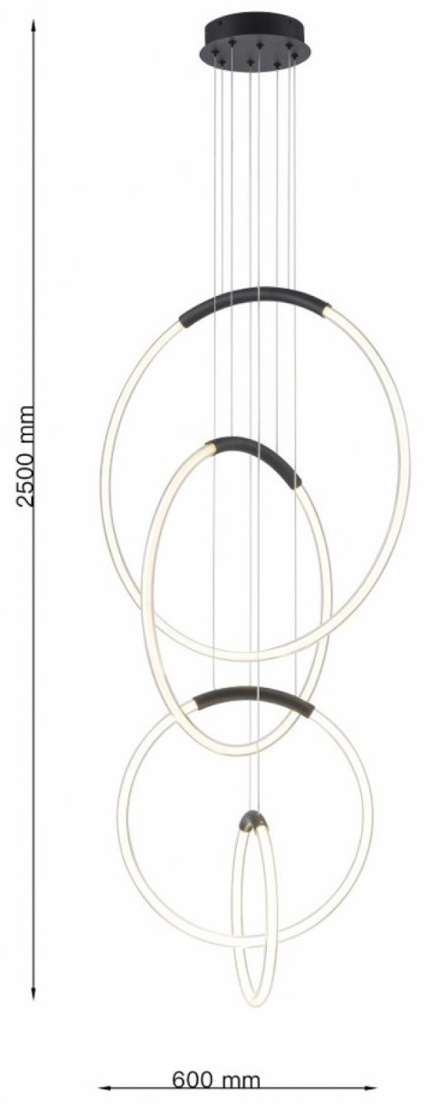 Iluminarea LED integrată oferă o lumină blândă și uniformă, ideală pentru crearea unei atmosfere confortabile și elegante în livinguri, săli de mese și spații cu tavan înalt. Finisajul negru mat, combinat cu accente aurii, formează un contrast rafinat și versatil, potrivit atât stilurilor moderne, cât și celor avangardiste.
