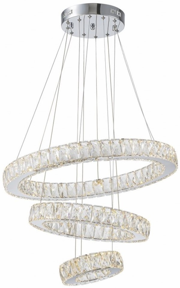 Această lampă suspendată LED impresionantă se remarcă printr-un design modern, format din trei inele din sticlă fin sculptată, care reflectă lumina într-un mod strălucitor și armonios. Construcția sa suspendată creează o senzație de lejeritate și rafinament, fiind ideală pentru livinguri, săli de mese și foaiere cu tavane înalte.