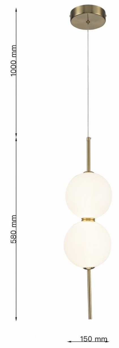 LP5203-1P este o lampă suspendată cu un design rafinat și contemporan, ideală pentru cei care caută eleganță și funcționalitate într-un singur element. Structura sa metalică cu finisaj auriu susține două sfere din sticlă opal, dispuse vertical, creând o estetică modernă echilibrată.