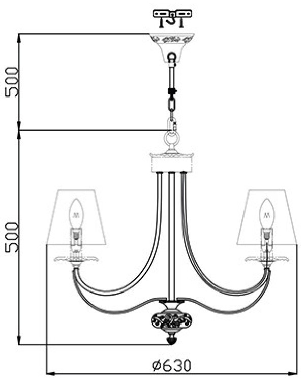 Prevăzut pentru 5 becuri de câte 60W (neincluse), modelul poate ilumina eficient o suprafață de până la 22 m². Candelabrul este compatibil cu tavane extensibile, cu condiția utilizării becurilor LED, oferind astfel o soluție rafinată și practică pentru interioarele amenajate cu gust.
