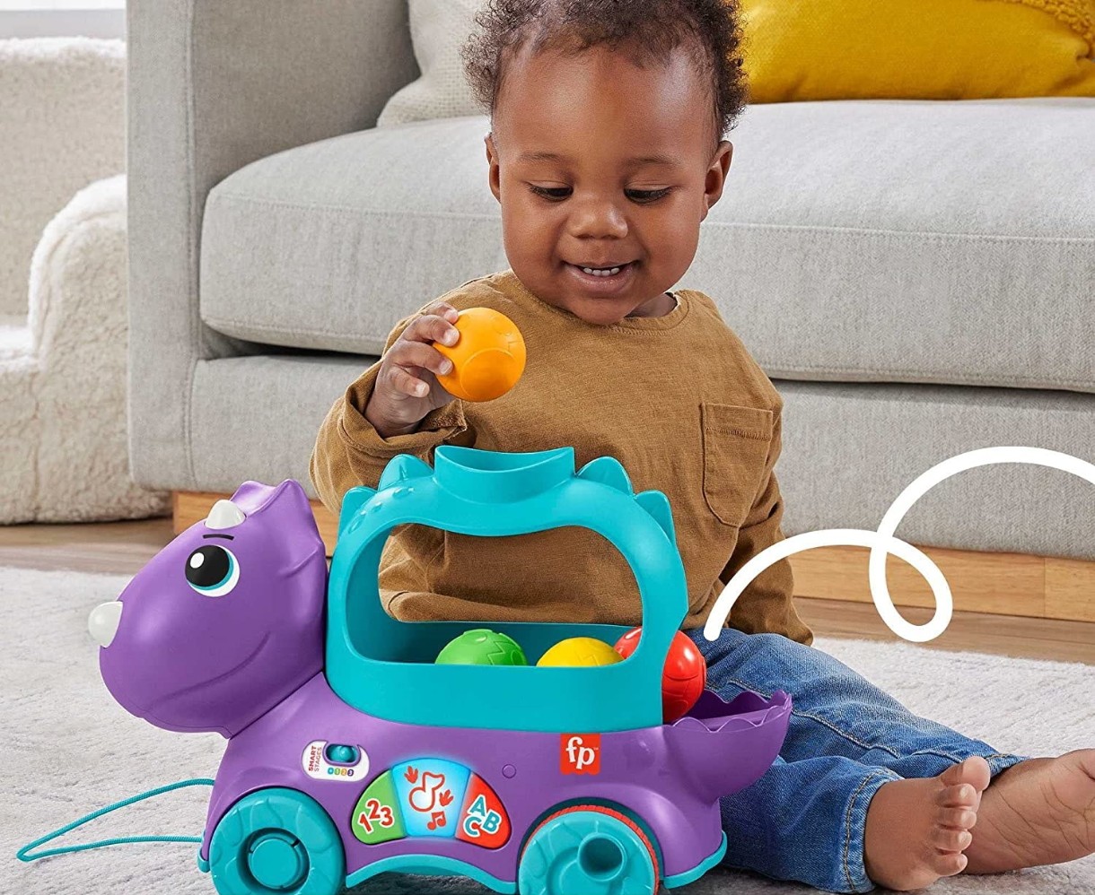 Jucarie de impins si tras Fisher Price Poppin Triceratops (HNR53)