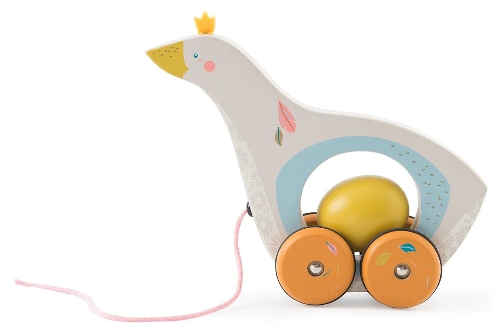 Cu acest simpatic animal de tras la Moulin Roty, Olga gâsca îl urmează pe copilul tău oriunde merge. Gâsca are un design plin de dragoste și își poartă oul mai mult sau mai puțin sigur în burta ei.