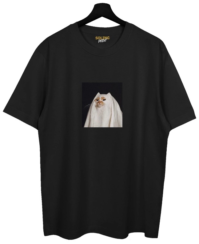 Tricou bărbătesc Soling Cat ghost Black s.S (Print-fcg5)