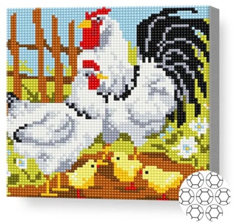 Pictura cu diamante după numere Art Gallery Premium Familia de păsări 20x20cm (BJ807)
