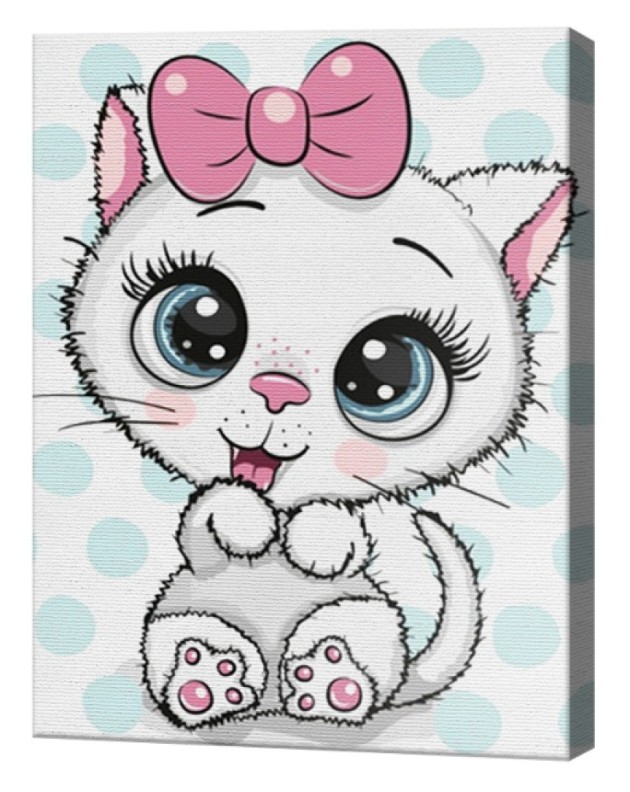 Tablou pe numere Art Gallery Premium White Cat With A Bow (CX4940)