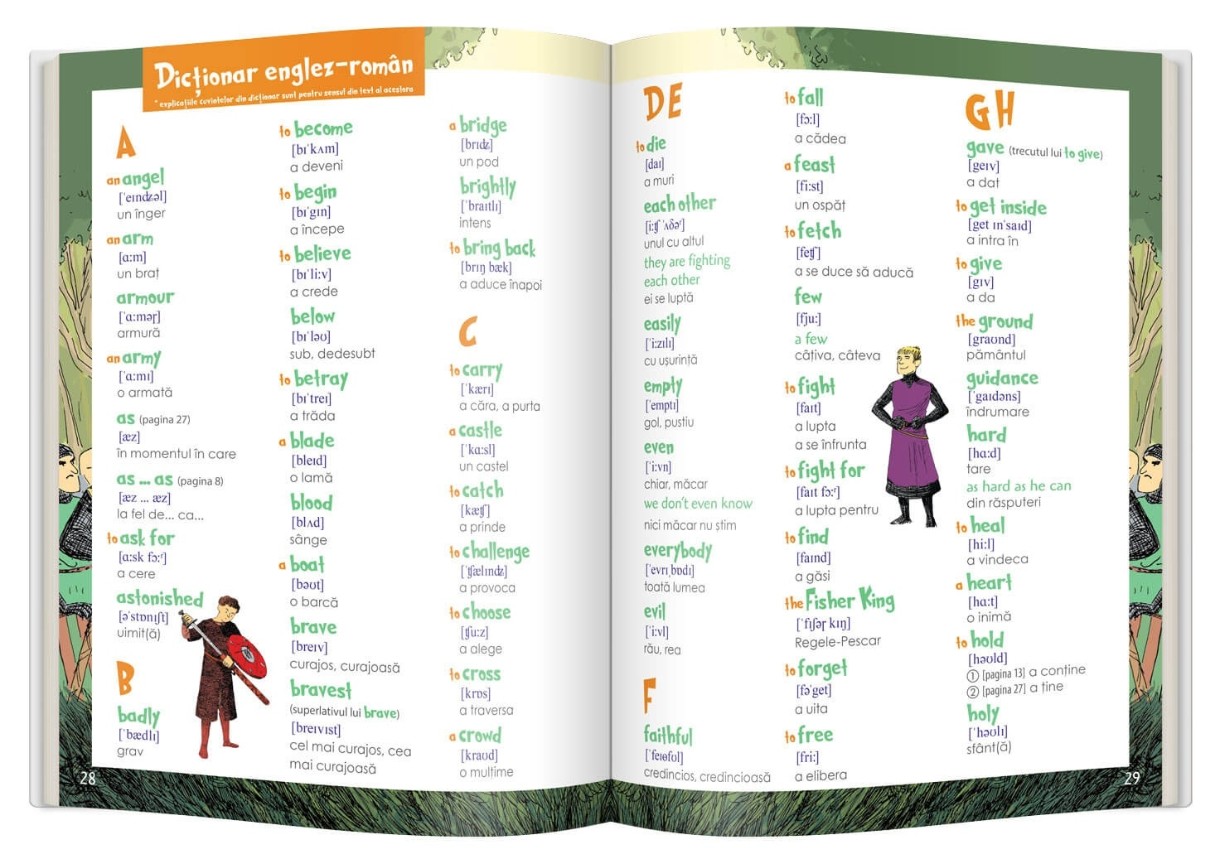 - dicționar englez-român la sfârșitul fiecărui volum, ca să înțelegi mai bine textul.