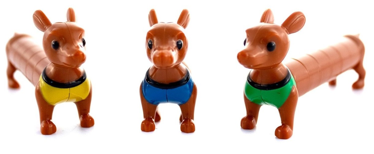 In setteren de joc, cub, 4 tecki, formați dintr-un cap și o coadă, 28 de burte de teckel, 4 oase, Regulile jocului