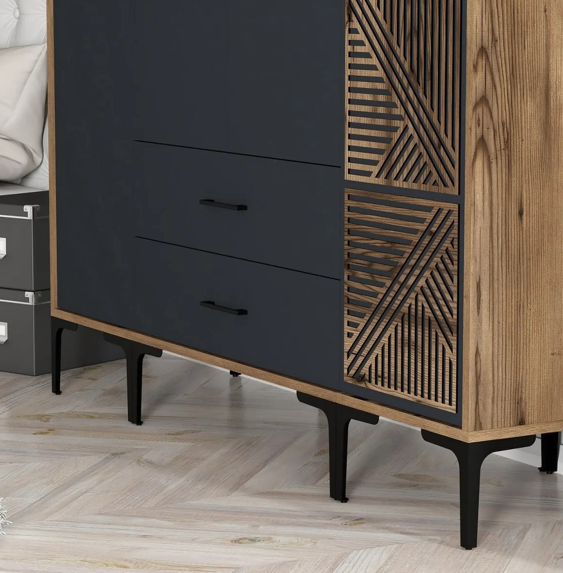 Vă prezentăm un dulap elegant, conceput pentru a aduce funcționalitate și rafinament în dormitor. Realizat cu grijă, reprezintă un echilibru perfect între stil și durabilitate.