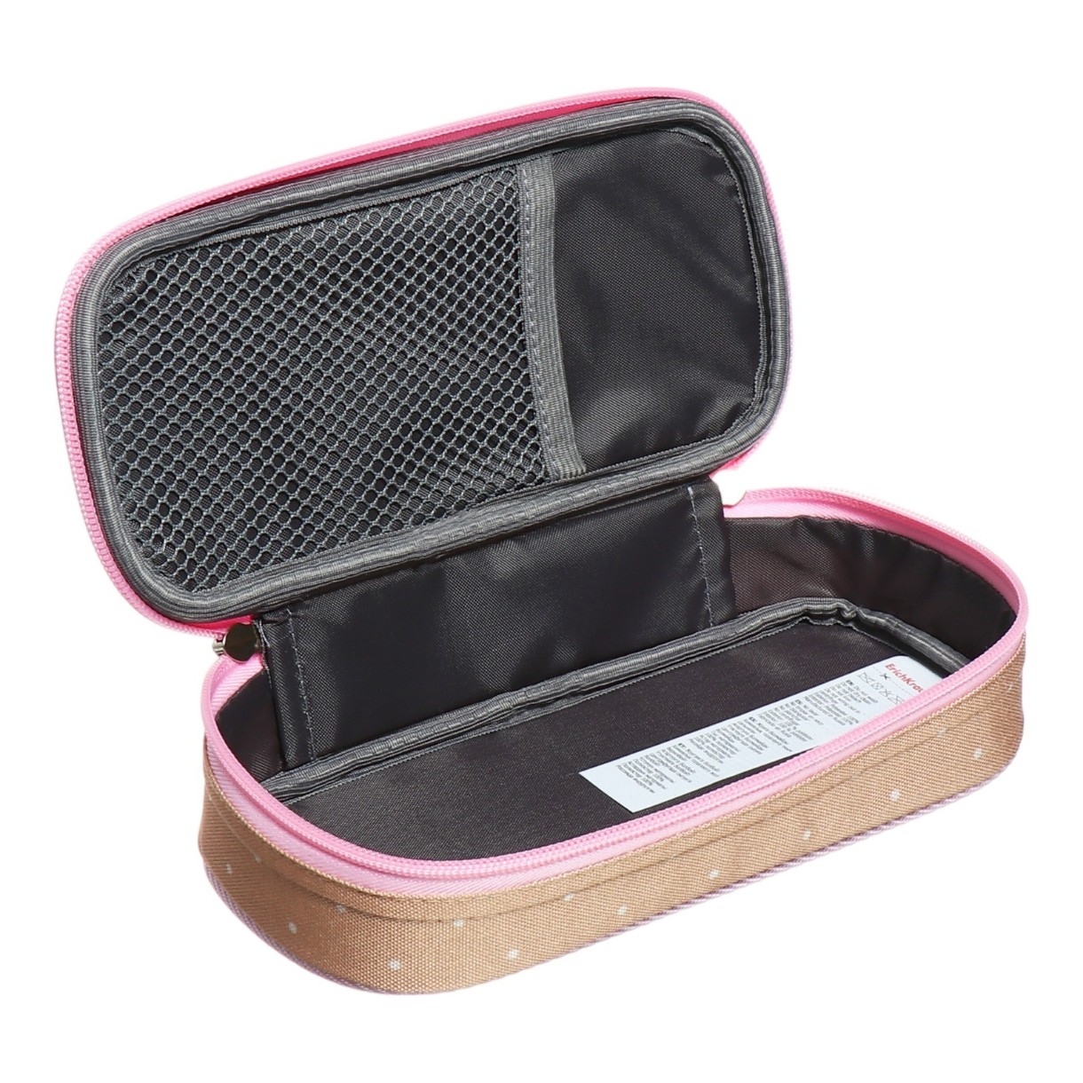 Acest penar spațios (21 x 5 x 10 cm) are o formă dreptunghiulară clasică, cu colțuri rotunjite. Este fabricat din poliester 100% 600D, durabil și rezistent la uzură. De asemenea, are un fermoar fiabil, cu deschidere ușoară. Husa are un buzunar interior din plasă pentru obiecte mici de papetărie și inserții de plastic între materialul exterior și căptușeală pentru o durabilitate sporită. Acesta conține practic tot ce ai nevoie pentru teme.