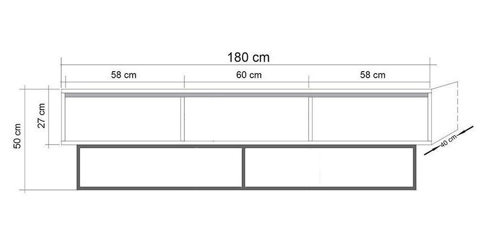 Suportul TV dispune de numeroase rafturi și un compartiment suplimentar, oferind suficient spațiu pentru organizarea dispozitivelor media, dvd-urilor și a altor accesorii. Raftul central este ideal pentru obiecte decorative, adăugând un plus de personalizare zonei de divertisment.