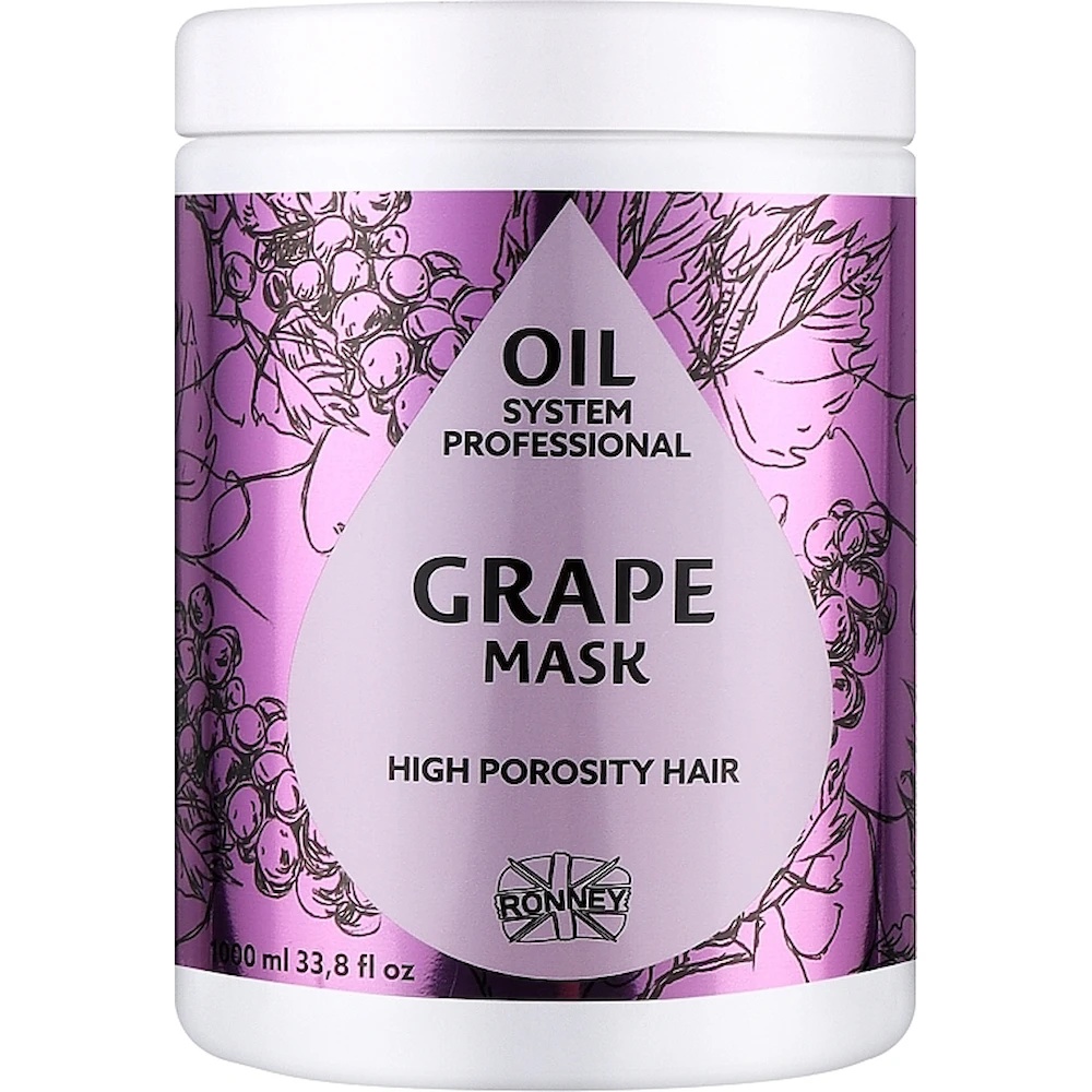 Masca pentru păr Ronney Grape High Porosity Hair 1000 ml — tratament intensiv pentru părul cu porozitate ridicată, deteriorat și predispus la uscăciune.