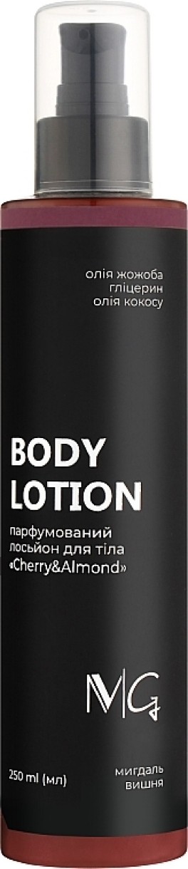 Loțiunea parfumată pentru corp Cherry & Almond de la brandul MG este o alegere minunată pentru îngrijirea delicată a pielii, oferindu-i un parfum inconfundabil de migdale și vișine coapte și suculente. Conține glicerină în combinație cu uleiuri hrănitoare de jojoba și cocos. Aceste ingrediente asigură epidermei o hidratare profundă, o îmbogățesc intens cu substanțe benefice, au efect emolient și protejează pielea împotriva acțiunii agresive a factorilor externi.