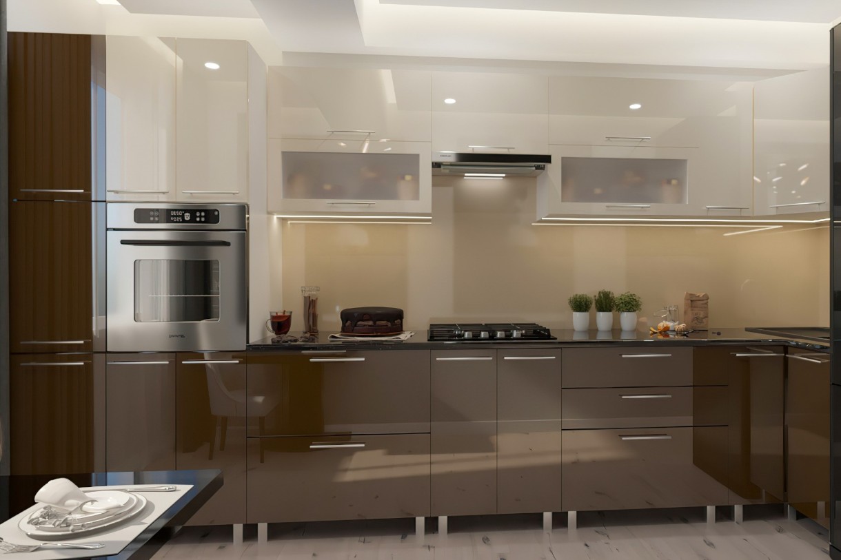 Bucătărie Bafimob Corner (High Gloss) 4.1x0.9m Eco +ball closer Brown/Beige
