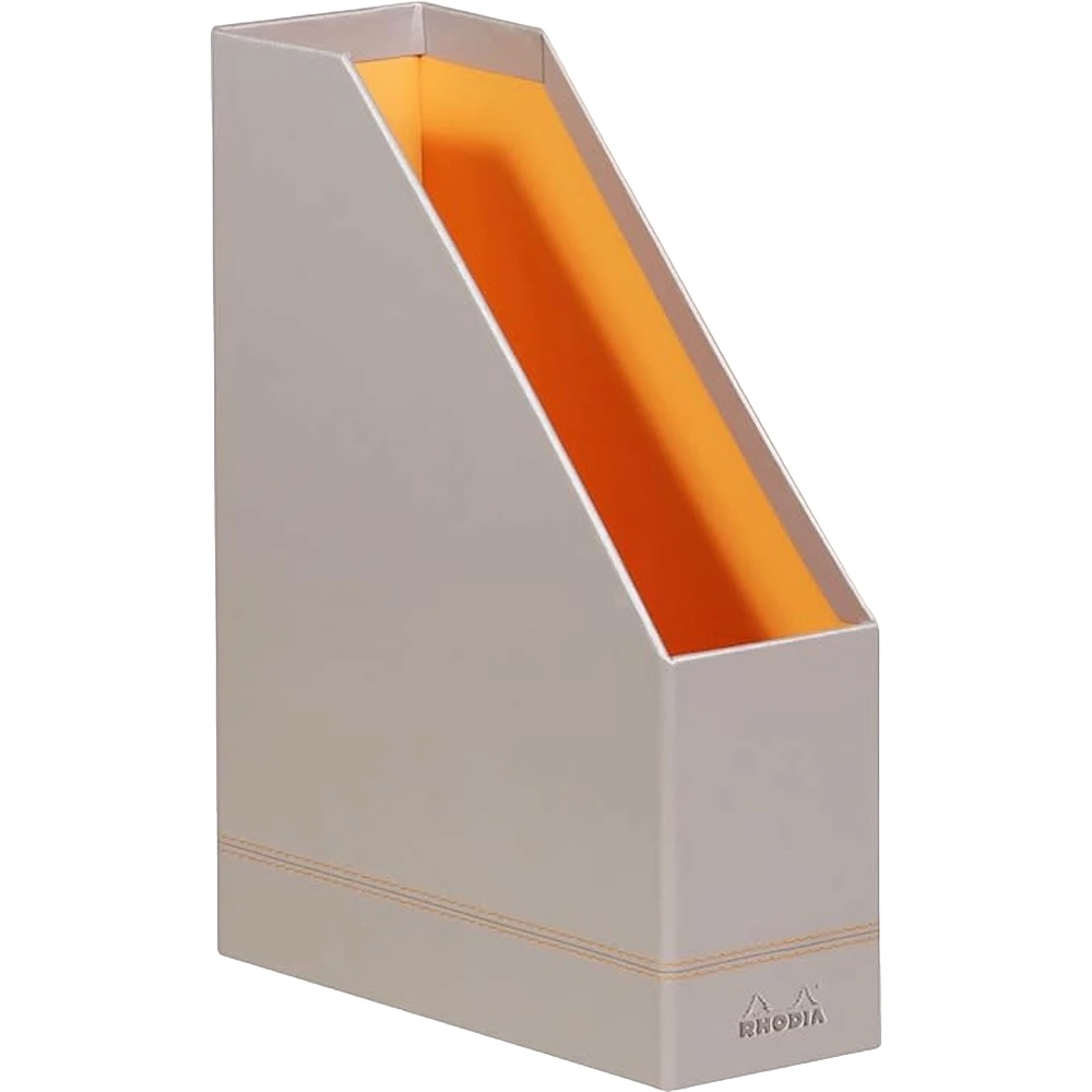 Piele ecologică italiană de înaltă calitate, cu textură catifelată și logo Rhodia embossat. Cusătură portocalie elegantă și coordonată în interiorul suportului pentru reviste.