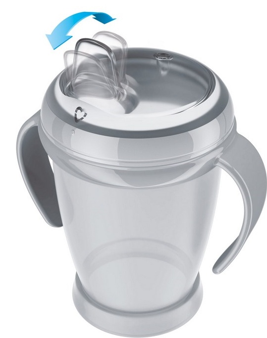 Un băutor elegant permite bebelușului să bea fără să se vărsă. Nu interferează cu reflexul de supt.