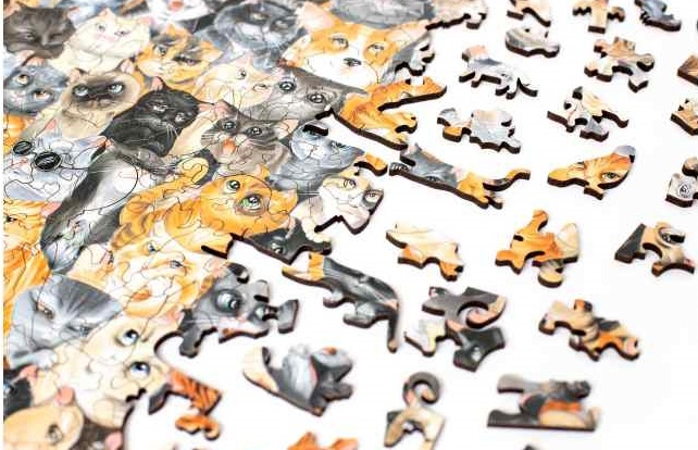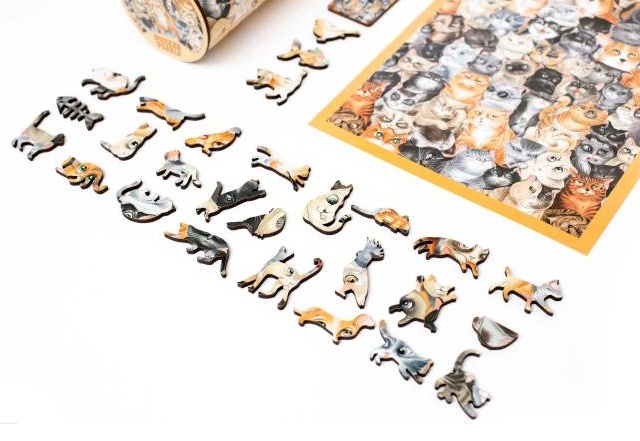 la masa sau chiar pe covor. Ma strecor printre ei, trec usor peste piesele puzzle-ului si torc, bucurandu-ma de compania noastra calda. Dar astazi, se pare, ca ai mei mi-au pregatit o surpriza speciala. Ce poate fi mai dragut decat puzzle-ul in care apar ca niste flori in campul de primavara, fetele vesele ale colegilor mei de trib - pisici si pisoi. Si nici macar nu mai este atat de important ca cativa caini s-au furisat printre noi - suntem atat de frumosi incat frumusetea asta de pisica nu poate fi diluata cu nimic!
