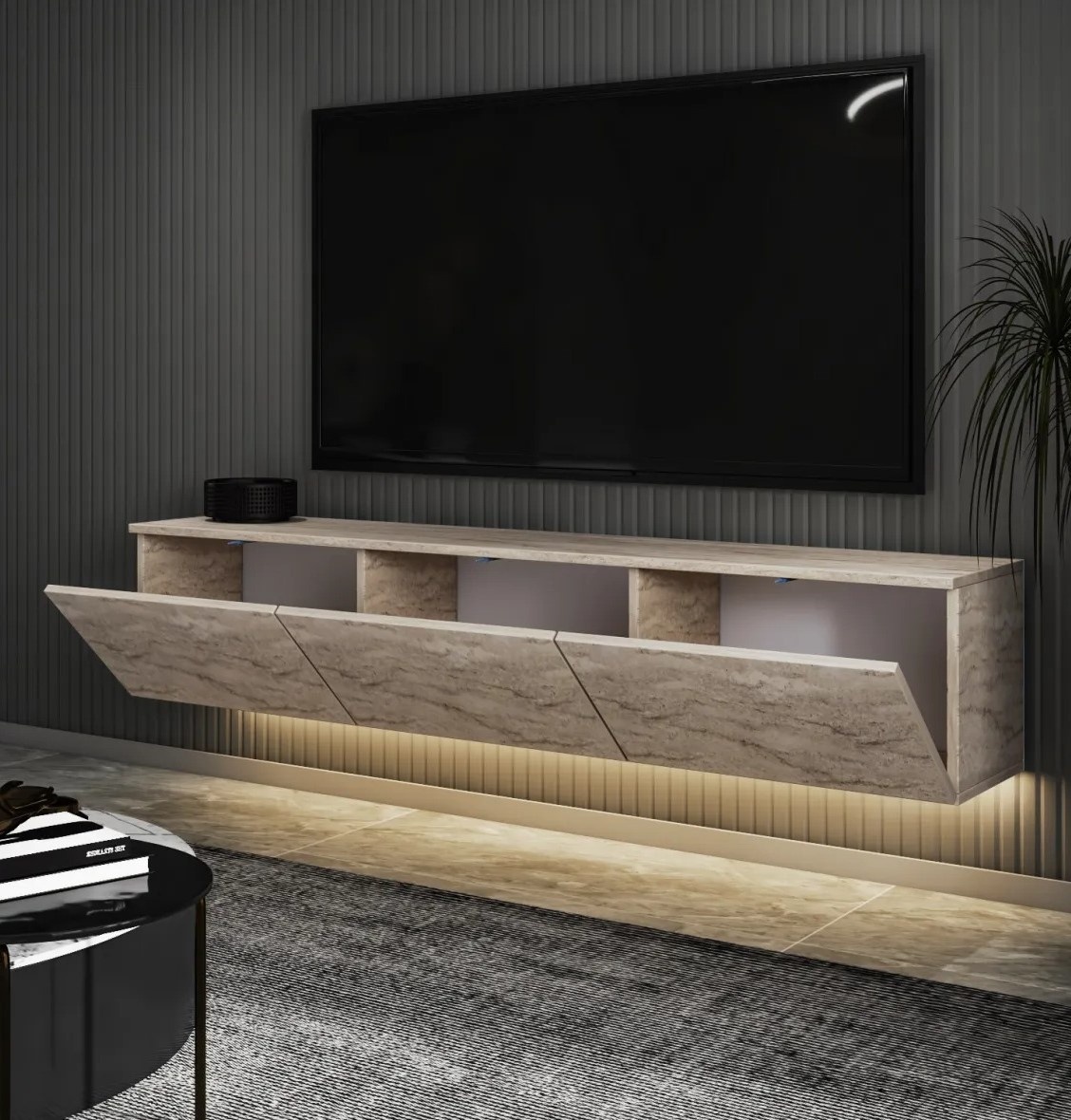 Comodă TV Trendy Neon Illuminated Travertin 160x35x32cm GTR006334