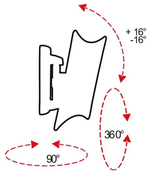 Standard VESA200x100, 180x120, 50x50, 75x75, 100x100, 200x200 mm