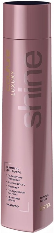 Luxury Shine este o linie a mărcii Estel Professional pentru îngrijirea profesională a părului. Datorită produselor din colecție, chiar și părul foarte plictisitor și slab va căpăta un aspect îngrijit și strălucire de lux! Estel Professional Couture Luxury Shine Haute este formulat pe bază de acid hialuronic, proteine de mătase și pantenol. Efectul complex al acestor componente garantează refacerea buclelor uscate fragile și poroase. Produsul are un efect delicat asupra firelor și scalpului, nu se usucă și nu provoacă disconfort. Caracteristicile șamponului de la Estel Professional:
