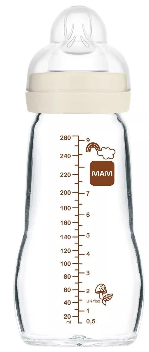 Pentru a ușura părinților îngrijirea zilnică a copilului, biberonul MAM Feel Good este fabricat din sticlă termorezistentă de înaltă calitate. Tetina este plată și moale, imitând sânul mamei, ceea ce permite copilului să suga liber și reduce riscul apariției colicilor.