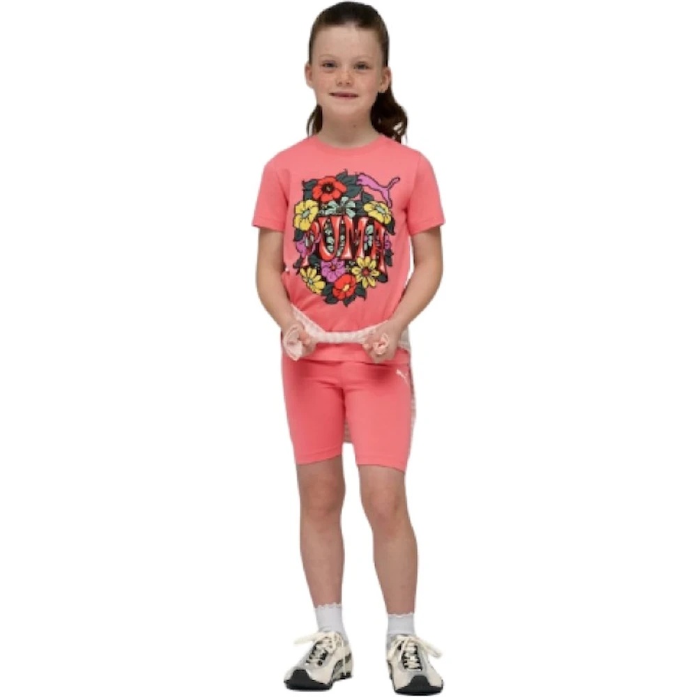 Costum sport pentru copii Puma Mid90S Graphic Tee Wild Pink — un set modern și confortabil pentru cei mici, inspirat din stilul anilor ’90. Culoarea vibrantă Wild Pink și imprimeul Mid90S oferă un look sportiv, vesel și retro.