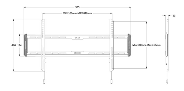 Standard VESA300x200, 300x300, 400x200, 400x400, 600x400, 800x400 mm