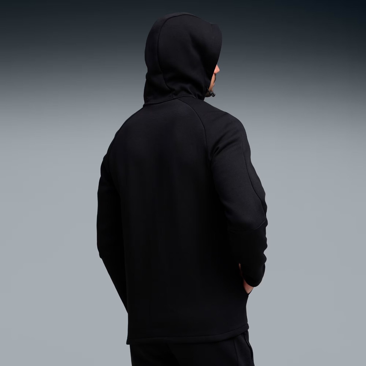 Liniile ergonomice ale croielii, inserțiile pe mâneci și cusăturile raglan asigură libertate de mișcare, iar gulerul înalt cu glugă și cordon reglabil protejează împotriva vântului. Buzunarele laterale cu fermoar adaugă comoditate și funcționalitate. Logo-ul PUMA Cat de pe piept subliniază caracterul sportiv al modelului.