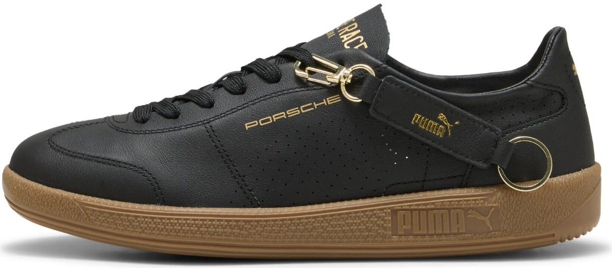 Detaliile aurii de branding Porsche și PUMA evidențiază caracterul premium al modelului. Eticheta din piele Porsche, cu carabină metalică, devine un element distinctiv care subliniază unicitatea designului.