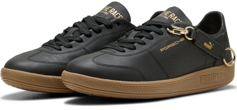 Detaliile aurii de branding Porsche și PUMA evidențiază caracterul premium al modelului. Eticheta din piele Porsche, cu carabină metalică, devine un element distinctiv care subliniază unicitatea designului.