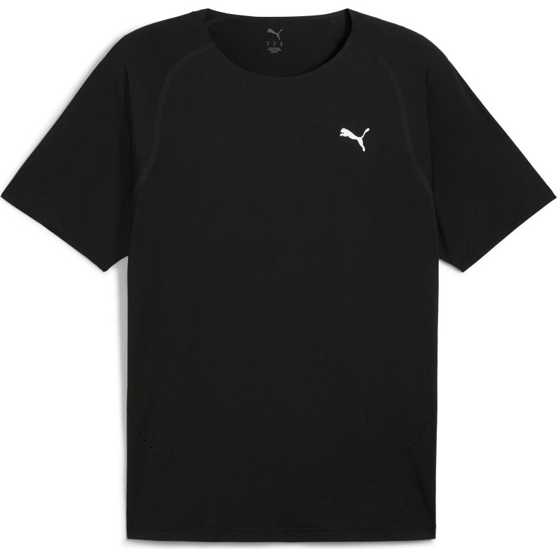 Perforațiile laterale îmbunătățesc ventilația, iar cusăturile lipite pe umeri și spate reduc riscul de iritații și cresc confortul în timpul alergărilor lungi. Gâtul rotund, logo-ul PUMA Cat discret pe piept și estetica sport curată evidențiază caracterul tehnologic al modelului. Tricoul este realizat din cel puțin 90% materiale reciclate.