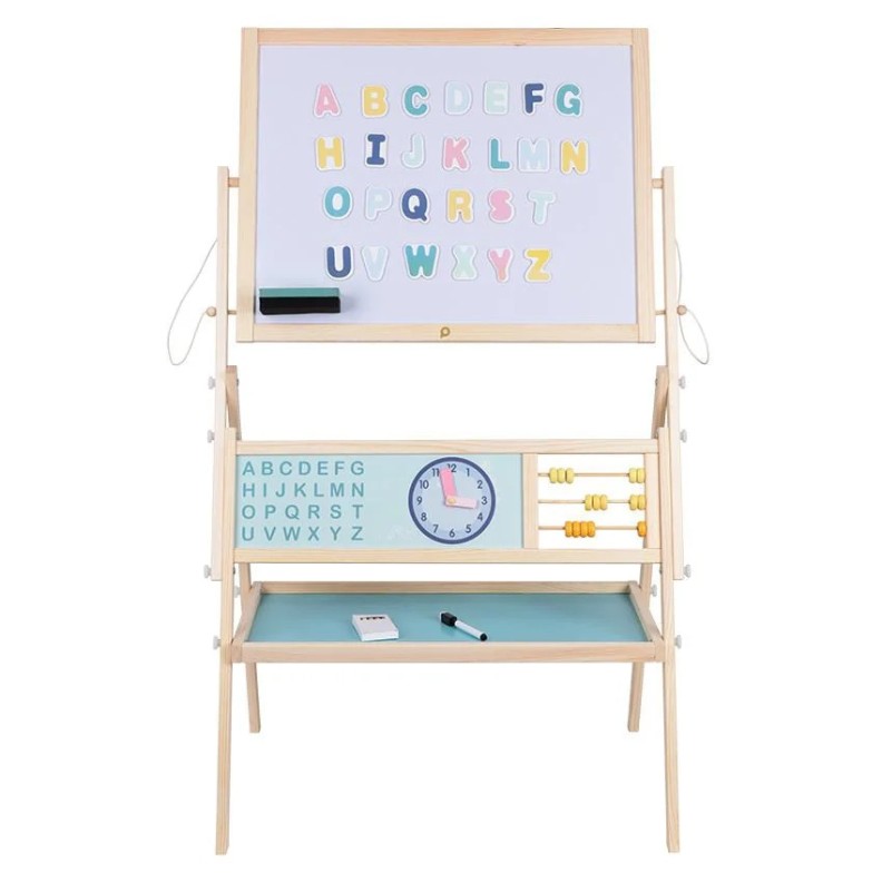 - Oferă două suprafețe de desen: o față pentru cretă și una pentru markere.