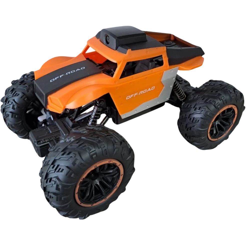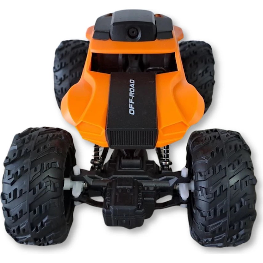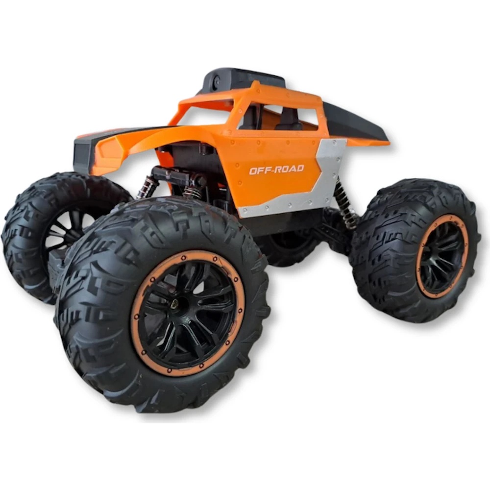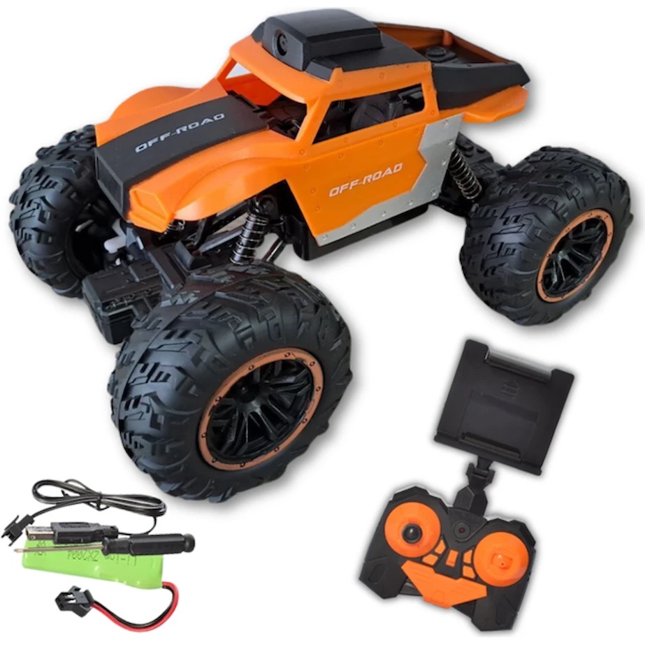 Mașinuță cu telecomandă de culoare portocalie, cu cameră și Wi-Fi — combinația perfectă între distracție și tehnologie. Se controlează prin smartphone și permite înregistrare foto-video în timp real.