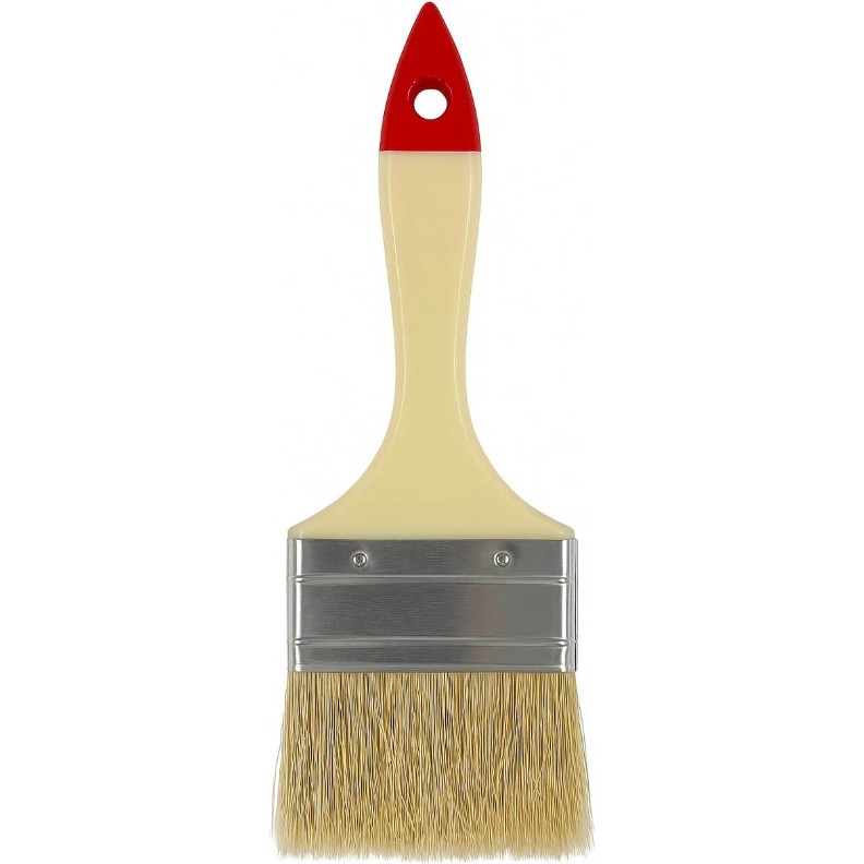 Perie plată Bau Welt cu fibre naturale și mâner din plastic ergonomic — utilizată pentru aplicarea diverselor materiale de finisaj, precum vopsele, lacuri sau grunduri, pe suprafețe netede și texturate.