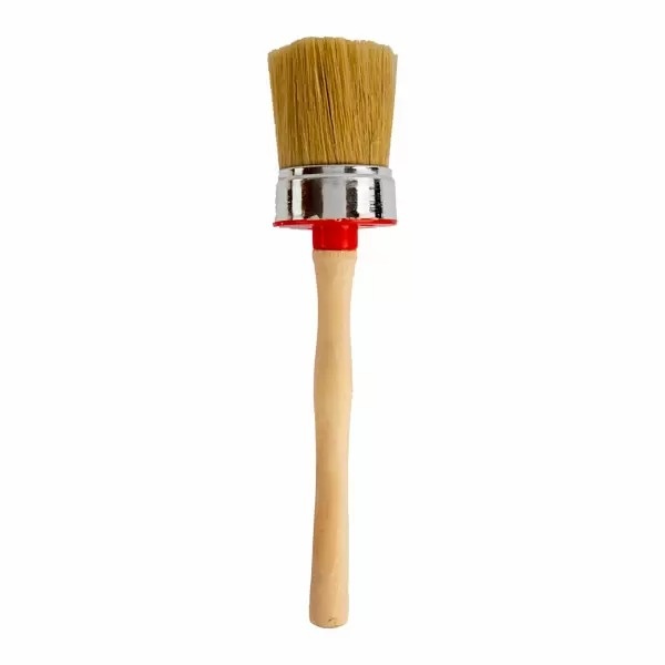 Pensula rotundă cu mâner din lemn este un instrument universal pentru aplicarea materialelor vopsea, amestecurilor bituminoase, adezivilor pentru tapet, precum și a soluțiilor de var pentru albirea pereților, tavanelor și trunchiurilor de copaci. Mânerul pensulei este realizat din lemn natural de înaltă calitate, ceea ce asigură durabilitate și confort în utilizare. Perii naturali sunt fixați cu o brățară din plastic rezistent, garantând longevitate și fiabilitate în timpul utilizării. Acest instrument este ideal pentru lucrul cu o gamă largă de materiale, fiind perfect pentru finisaje, aplicarea de tratamente pe suprafețe și lucrări agricole.