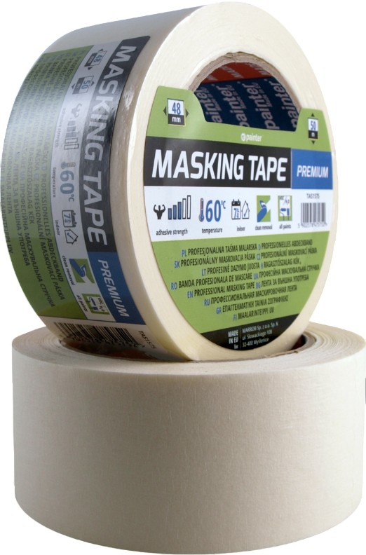 PAINTER Masking Tape PREMIUM — bandă adezivă de înaltă calitate pentru lucrări profesionale și casnice. Asigură aplicarea uniformă a vopselei, aderență sigură pe diverse suprafețe (lemn, metal, sticlă, plastic) și îndepărtare ușoară fără urme de adeziv. Rezistentă la temperaturi și vopsire, ideală pentru marcarea precisă, protejarea suprafețelor și crearea de linii de margine clare.