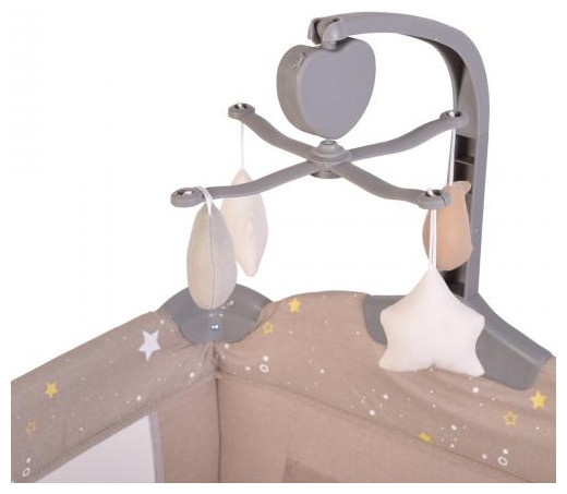 Inclusiv un saltea de înfășat detașabilă; Mobil muzical cu 4 jucarii. Cu un buzunar lateral mare pentru jucării. Țesătură de in de înaltă calitate, cu imprimeu de basm. Intrare laterală cu fermoar care oferă bebelușului dumneavoastră o cale de intrare și de ieșire din curtea de joacă, atunci când se târăște.