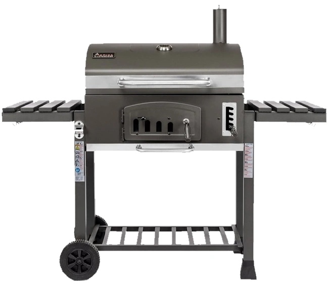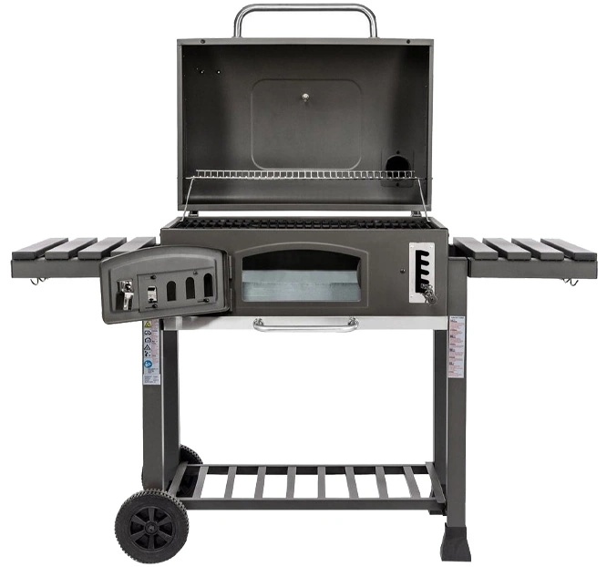 În corpul focarului veți găsi o ușă de inspecție special concepută pe care o puteți deschide și adăuga cărbune sau brichete fără a întrerupe procesul de grătar!
