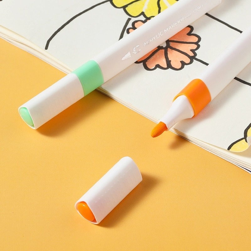 Markerele acrilice DELI EMK3 din seria „Color emotion” sunt destinate creativității, se aplică pe diverse materiale - textile, lemn, sticlă, piatră. Markerele sunt impermeabile, nu se decolorează în timp. Vârfuri de lungă durată. Setul conține 36 culori.