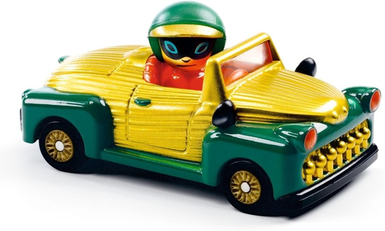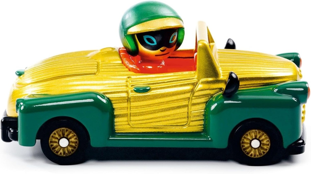 Mașină de curse din metal cu suspensie. Un pilot de curse creat special pentru fiecare mașină. Piesele din plastic dau mașinii un loo unic. Vopsea metalică cu ultrasunete. O lume a mașinilor nebunești, fiecare cu propriul său pilot.