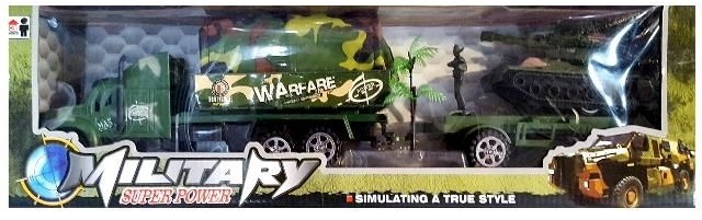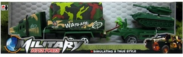 Un set de echipament militar îi va încânta pe micii războinici și colecționari. Setul vine cu o remorca, pe remorca careia se afla un tanc. Cu un set tematic de echipament militar, te poți simți ca un comandant curajos, poți veni cu operațiuni secrete și un plan de capturare. Posibilitățile de joc ale setului militar sunt nesfârșite, vă vor permite să creați multe situații de joc într-o campanie distractivă între prieteni sau singur.