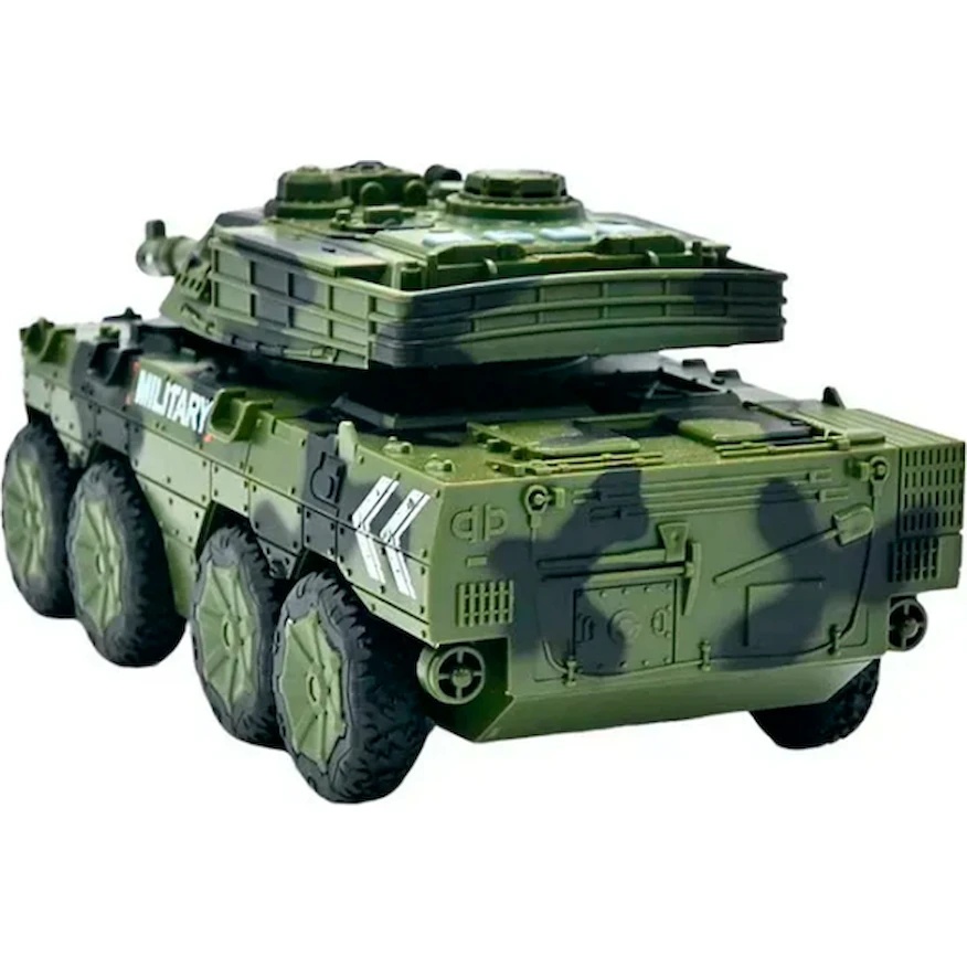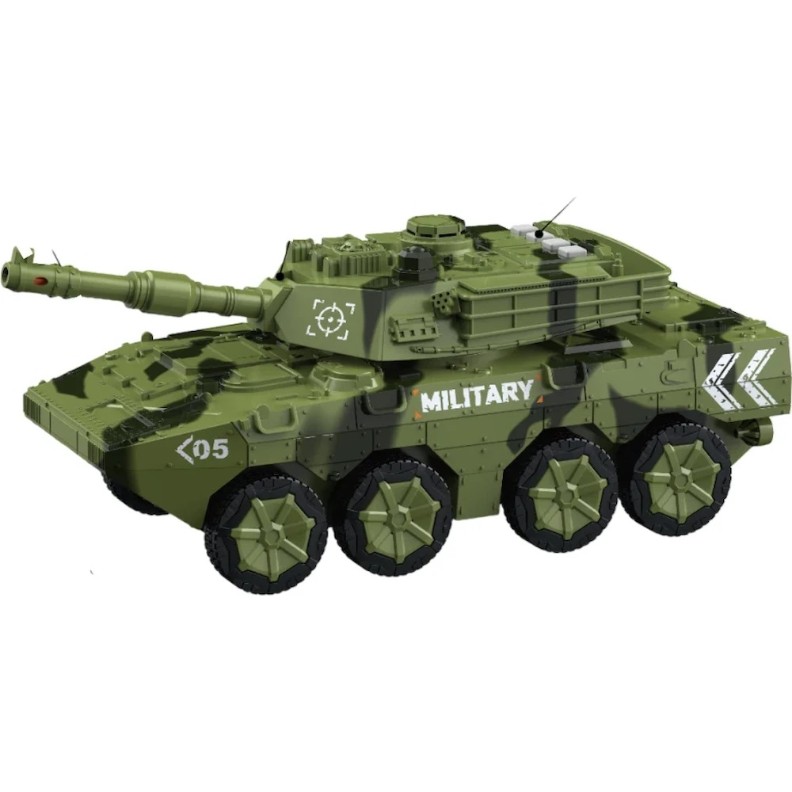 Sistemul cu inerție permite deplasarea ușoară prin simpla împingere, fără a necesita baterii pentru mișcare. Turela este mobilă, iar tunul orientabil adaugă un plus de realism și interactivitate în timpul jocului. Efectele de lumini și sunete contribuie la simularea scenariilor militare și fac experiența de joacă mai captivantă. Jucăria este realizată din plastic rezistent, conceput pentru utilizare îndelungată.