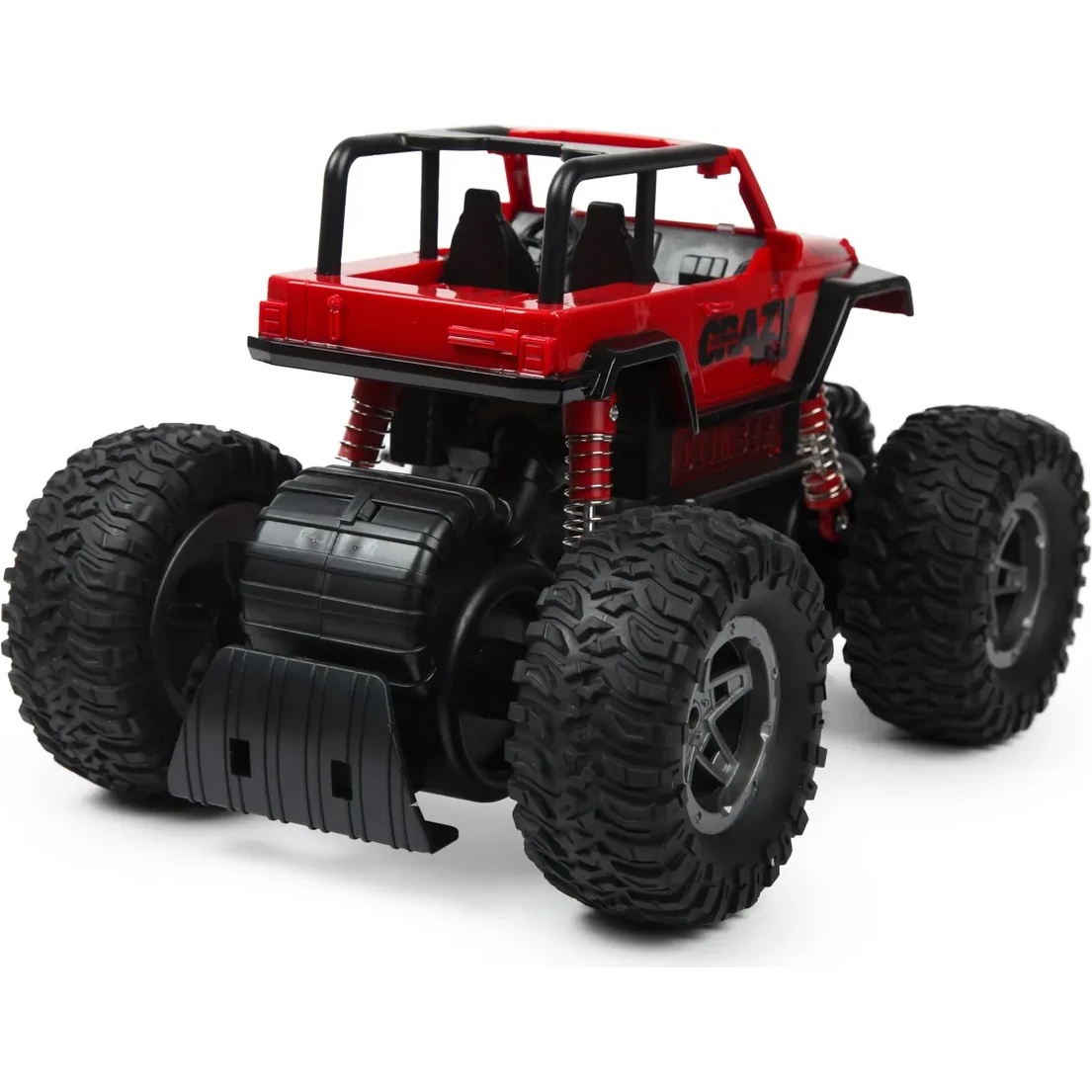 Jucăria este realizată din plastic rezistent, cu detalii bine definite, suspensie vizibilă și roți late care asigură stabilitate pe diverse suprafețe. Efectele de lumină și sunet sporesc realismul și fac joaca mai captivantă, transformând fiecare cursă într-o experiență spectaculoasă.