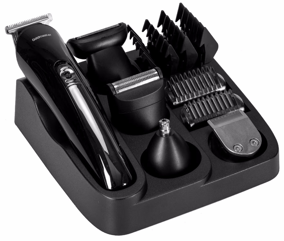 Set4 piepteni pentru tuns. (3-6-9-12 mm), pieptene reglabil pentru tuns barba. (3-4-5-6 mm), 3 piepteni de ras, adaptor, perie de curatat, ulei de îngrijire, stand