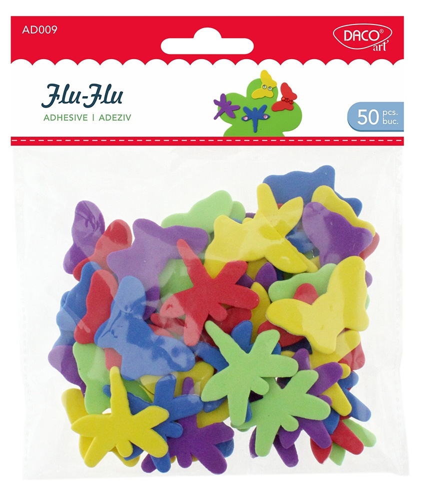 Adaugă un plus de creativitate proiectelor tale handmade cu setul de insecte autoadezive Flu-Flu de la DACOart. Acest set conține 50 de bucăți din spumă autoadezivă, disponibile în două modele: fluturi și libelule. Cu dimensiuni variate, aceste accesorii sunt ideale pentru decorarea felicitărilor, albumelor, proiectelor școlare și altor creații artistice.