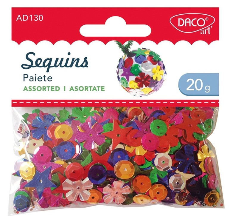 Cu Paietele asortate de la DACOart, orice creație prinde viață prin culori vibrante și detalii strălucitoare! Fie că le folosești pentru școală, hobby sau alte proiecte, aceste paiete vor adăuga un plus de originalitate și stil. Descoperă posibilitățile infinite de decorare și lasă-ți imaginația să zboare!