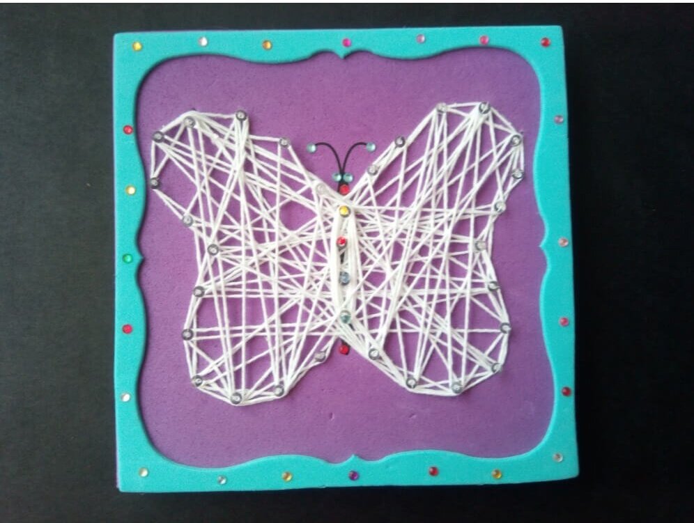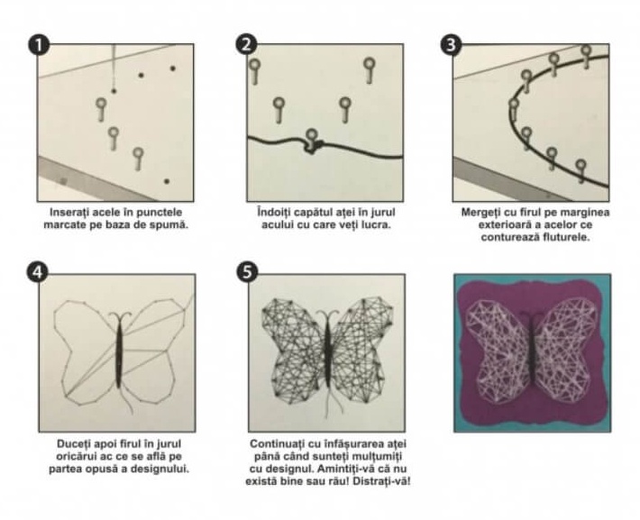 Cauți o modalitate inedită de a-ți decora camera sau vrei să oferi un cadou special cuiva pasionat de obiecte lucrate manual? Cred că ai soluția! Îți recomandăm Kitul Daco Creative Thread Butterfly, care constă dintr-o foaie de spumă mov de 15x15 cm cu un model desenat pe suprafața sa, ace de plastic și ață pentru a realiza fluturele.